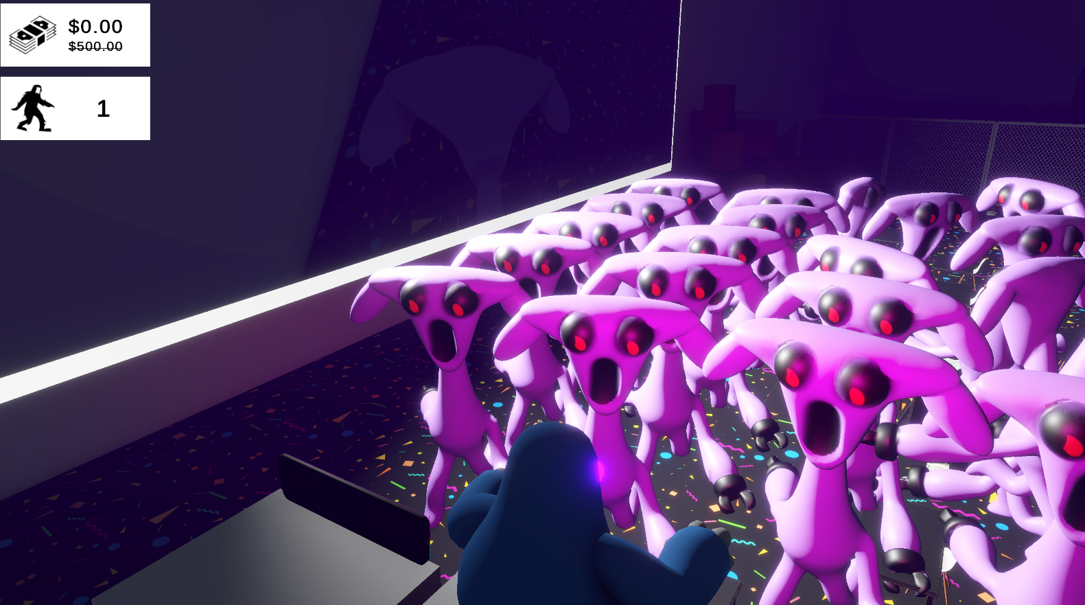 After Party, this will be my third indie game. What is this really about? You fall into a strange place, there is a party vibe there. But you are told to escape from here quickly because strange mutant monsters are watching you. They are newly born, and if you look away, they will eat you.